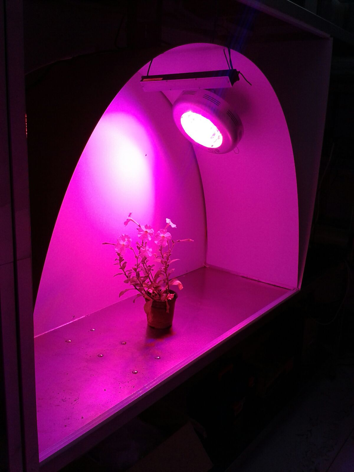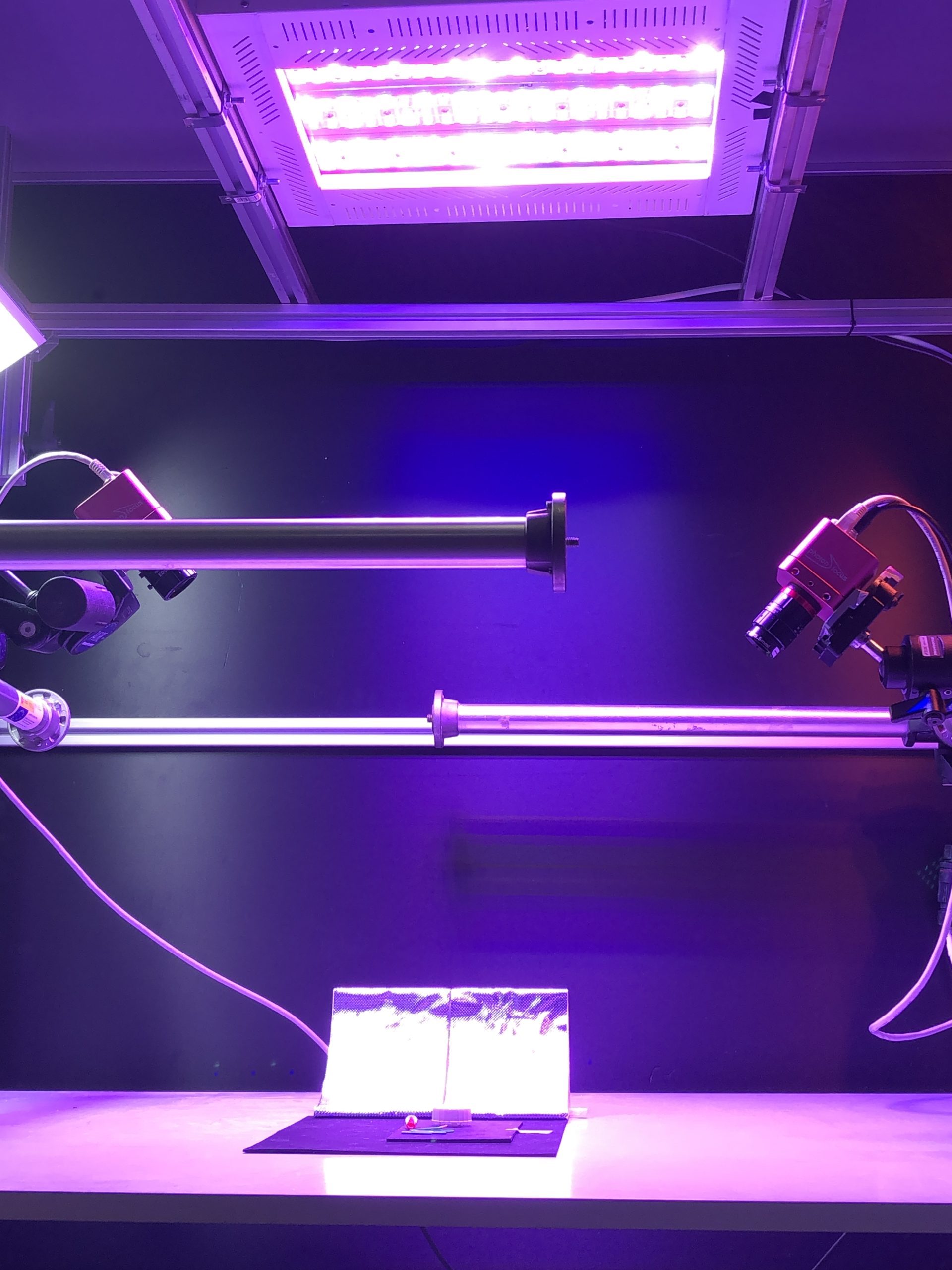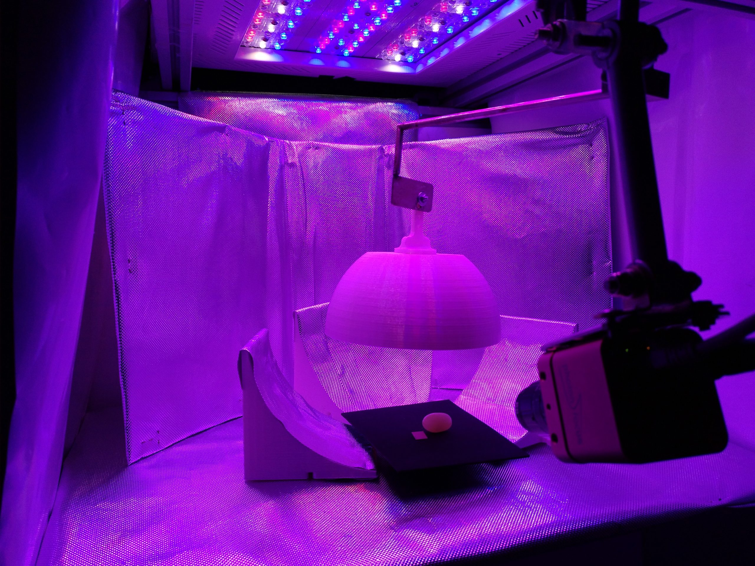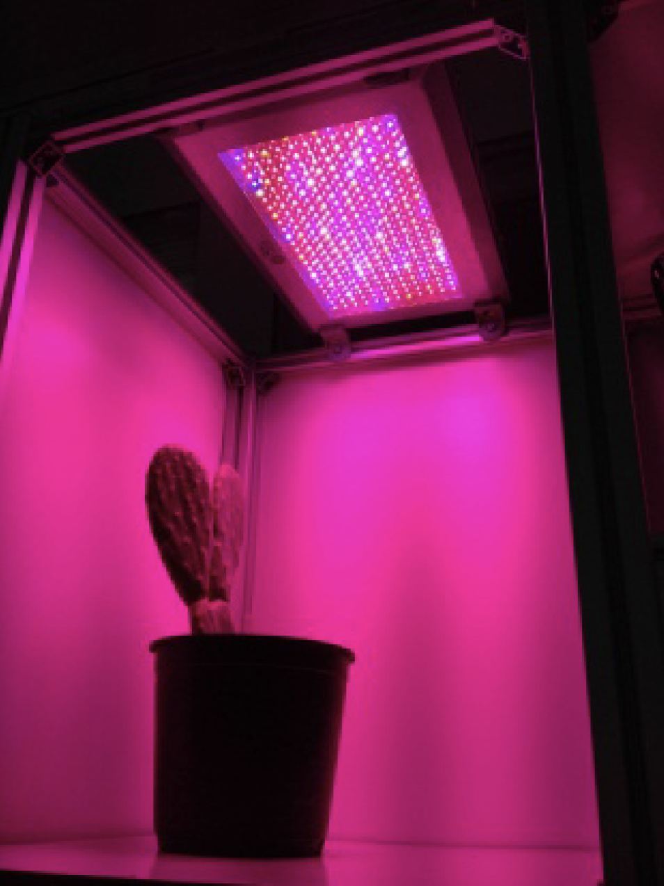 La primera generación de cámaras de crecimiento para el estudio del ritmo circadiano se caracterizó por la utilización de dos cámaras analógicas que permitían la captura de imágenes durante la noche y el día. Durante el día la planta se alimentaba con un panel de crecimiento como el que aparece en figura, y durante la noche con un iluminador IR.
