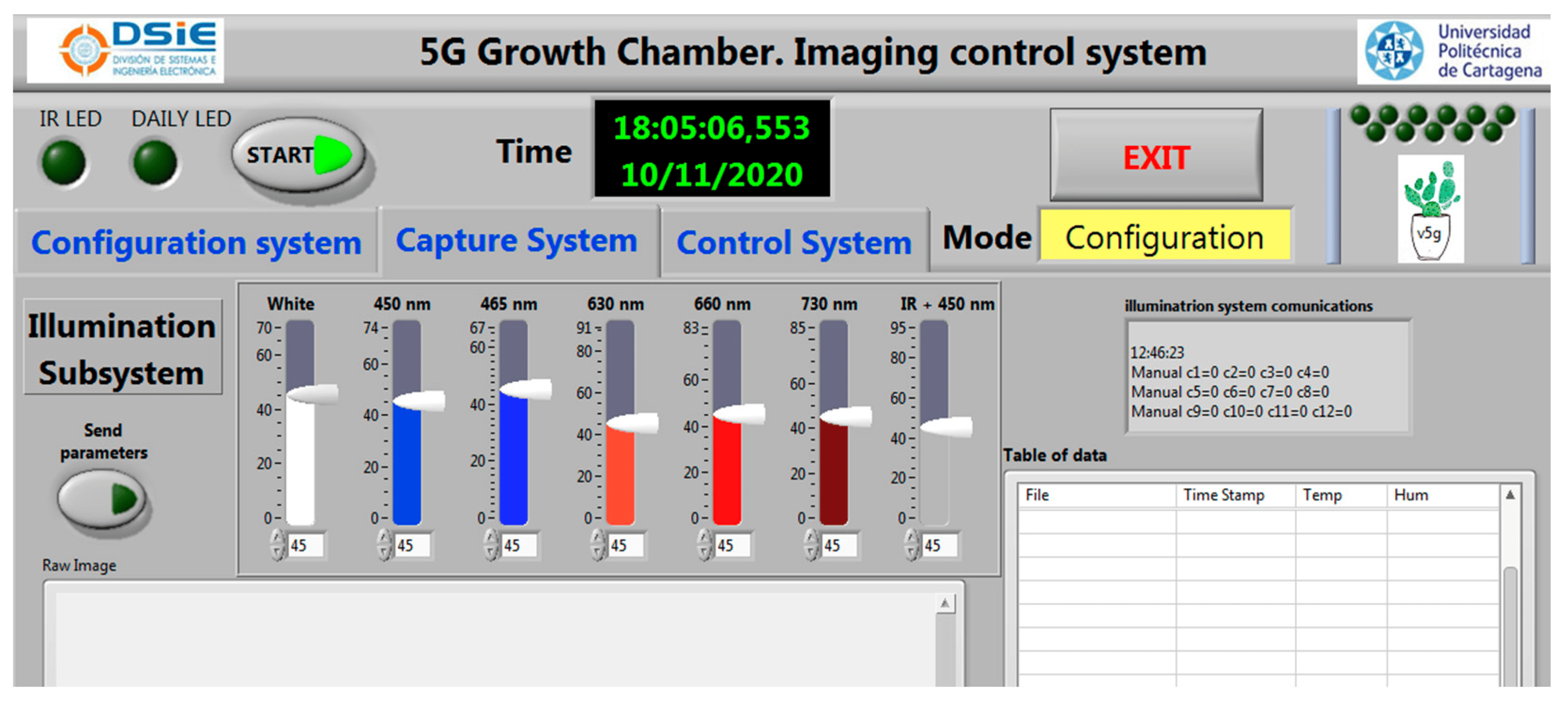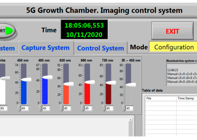 La tercera generación de cámaras de crecimiento integro por primera vez tecnología multiespectral de captura de imagen. Para ello se diseñó un habitáculo junto con sistemas ad-hoc de iluminación LED multiespectral que permitían capturar de manera alterna imágenes en un rango visible o IR, concretamente 12 canales en el visible y 25 en el IR. Para el control de los canales de iluminación y la captura multiespectral se desarrolló un software de adquisición y una interfaz de control de los dispositivos.
